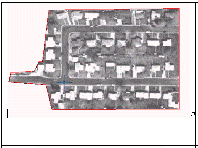 Comme illustré dans l'exemple suivant, il est possible de définir un ensemble résidentiel en tant qu'objet région sur une photo aérienne. Vous pouvez convertir l'objet région en une nouvelle image que vous utiliserez comme base pour un plan de rues.
