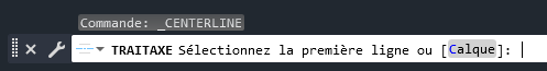 - Dans l’invite de commande, à l’aide de la nouvelle option Calque des commandes TRAITAXE et MARQUECENTRE.