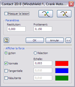 Définissez les propriétés du contact 2D et affichez le vecteur de force. Dans le navigateur, cliquez avec le bouton droit de la souris sur la liaison de contact 2D, puis choisissez Propriétés.