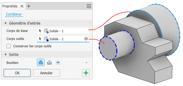 Celle-ci permet de conserver l’armature utilisée dans l’opération en tant que corps distinct. Ce corps n'est plus visible après l'opération. Si l’option n’est pas activée, l’armature est utilisée et ne peut pas être réutilisée.