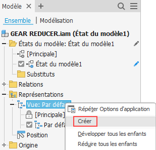 Dans le navigateur Modèle de l’ensemble, développez le nœud Représentations, cliquez avec le bouton droit de la souris sur Vue et, dans le menu contextuel, choisissez Nouvelle.
