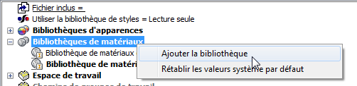 Cliquez sur le nœud Bibliothèques de matériaux avec le bouton droit de la souris et choisissez Ajouter une bibliothèque.