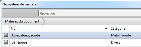 Ouvrez le navigateur de matières. La matière apparaît dans Matières du document. Elle ne figure pas encore dans une bibliothèque pour l’utiliser avec d’autres composants.