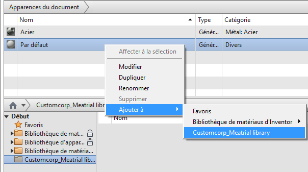 Condition préalable requise : style de matière personnalisé Inventor 2012 exporté en fichier *.styxml.
