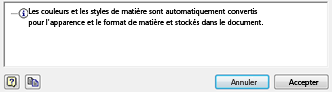 Les matières sont migrées de Styles de matière vers Matières. Aucune option ne permet de différer cette action. Les matières personnalisées que vous avez ajoutées sont migrées. Utilisez le navigateur de matières et l’éditeur de matières pour modifier ou créer des matières.