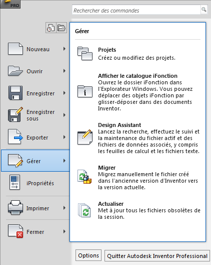 - Ouvrez un fichier créé dans une version antérieure d’Autodesk Inventor.