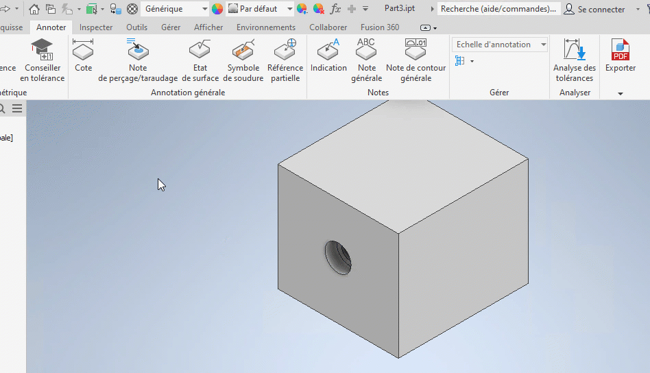 À partir d’Inventor, vous pouvez envoyer un fichier pièce (.ipt) vers Fusion 360 et créer des tâches d’inspection manuelle.