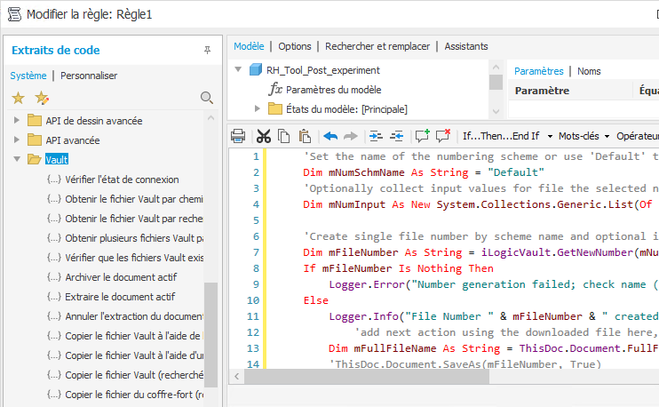Avec Inventor 2024, l’utilisation de Vault n’a jamais été aussi facile. Les nouvelles fonctions ajoutées à iLogic permettent à Inventor d’extraire, d’obtenir des fichiers, d’effectuer des recherches dans Vault et bien plus encore dans le cadre de vos automatisations. Les extraits de code Vault ajoutés à l’éditeur facilitent la mise en route.