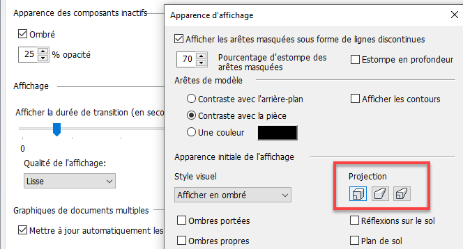 Il est désormais possible de définir Perspective avec faces orthogonales comme paramètre de vue par défaut dans les options d’application et de paramètres du document.