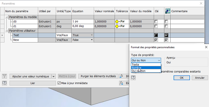 Exporter un paramètre booléen vers une iPropriété personnalisée