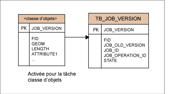 Une fois qu'une table a été activée pour les tâches, JOB_VERSION se voit affecter une nouvelle valeur pour chaque objet (série TB_JOB_VERSION_S),