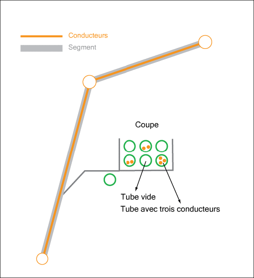 Dans le module Electricité Amérique du Nord, les segments et les conducteurs sont stockés avec la géométrie, mais les tubes sont des classes d'objets attribut sans géométrie. Tous les éléments peuvent être représentés sur la carte en utilisant des coupes.