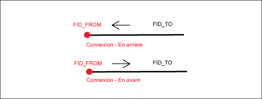 Indique le sens du flux entre un objet particulier (FID_FROM) et l'objet connecté (FID_TO).