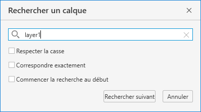 - Commencer la recherche au début : recherche le nom du calque en commençant par le calque supérieur.