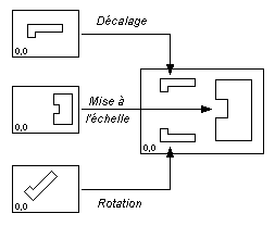 Les transformations simples vous permettent de juxtaposer les dessins (mosaïque), de les mettre à l'échelle ou de les superposer.