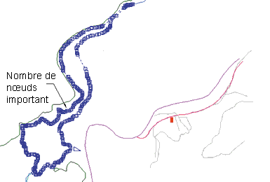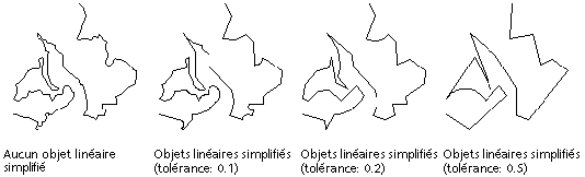 La simplification des objets linéaires provoque la suppression du maximum de points possible sur une polyligne tout en la maintenant dans son couloir de tolérance d'origine.