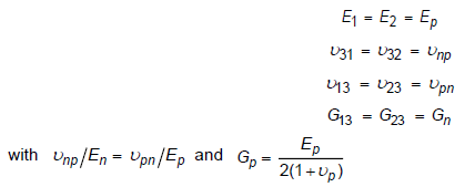 4. It may be difficult to find all nine orthotropic constants. In some practical problems, the material properties may be reduced to normal anisotropy in which the material is isotropic in a plane (that is, plane 1-2) and has different properties in the direction normal to this plane. In the plane of isotropy, the properties are reduced as follows: