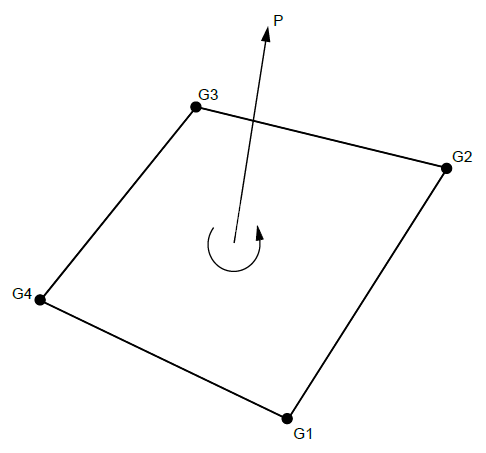 - In the case of a quadrilateral surface, the grid points G1, G2, G3, and G4 should form a consecutive sequence around the perimeter. The right-hand rule is applied to find the assumed direction of the pressure. Four concentrated loads are applied to the grid points in approximately the same manner as for a triangular surface.