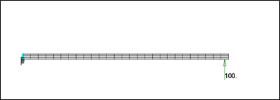 The cantilevered rectangular beam shown below is loaded with a tip pressure load of 100 psi, and three analyses are performed with different large displacement settings (using the LGDISP parameter in Inventor Nastran).
