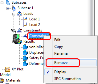 To remove the constraint, right-click on the constraint in the Tree, and select Remove: