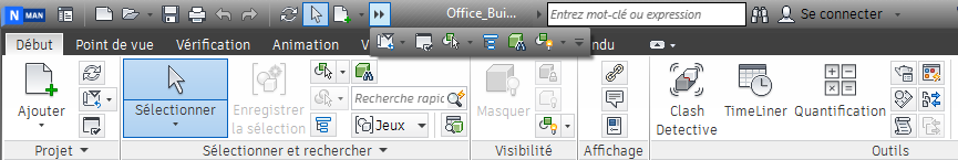Dans la partie supérieure de la fenêtre Navisworks, la barre d'outils d'accès rapide affiche les commandes fréquemment utilisées.