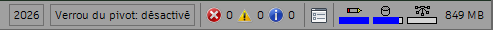 Le côté gauche de la barre d’état contient un indicateur de version de fichier ainsi qu’un bouton qui permet de verrouiller et de déverrouiller le point de pivot.