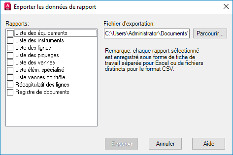 Remarque : Par défaut, les rapports sont exportés dans le dossier contenant vos documents.