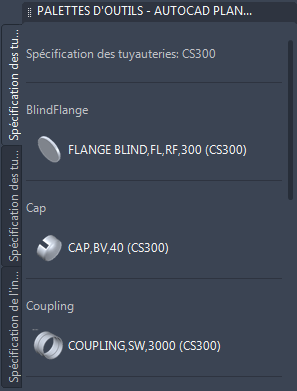 Ne pas utiliser la palette d'outils dynamique. Vous pouvez créer et personnaliser une palette d'outils de composants de tuyauterie statique à l'aide du Visualiseur de la spécification des tuyauteries. Ce comportement est compatible avec AutoCAD Plant 3D 2011.