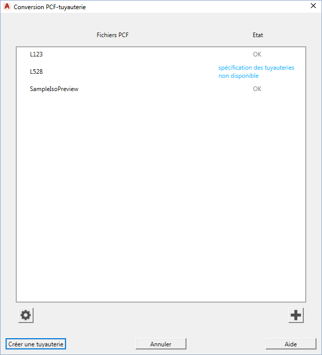 Vous pouvez importer des fichiers PCF créés dans le AutoCAD Plant 3D toolset ou d’autres programmes.