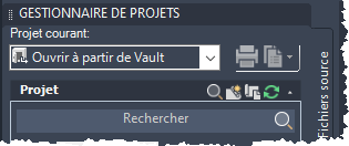 Dans la liste Projet courant, cliquez sur le bouton Ouvrir à partir de Vault.