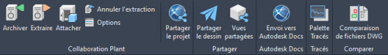 La synchronisation de projet dans un projet de collaboration s’effectue automatiquement par défaut, mais vous pouvez contrôler manuellement les archivages ou les extractions, ainsi que leurs options dans l’onglet Collaborer du ruban.