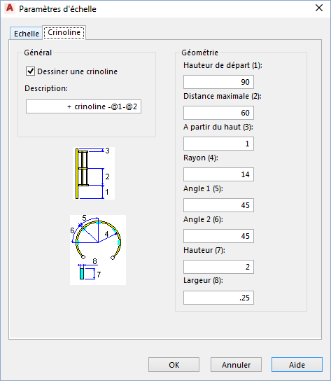 Spécifie les paramètres de crinoline par défaut pour la création d'échelles.
