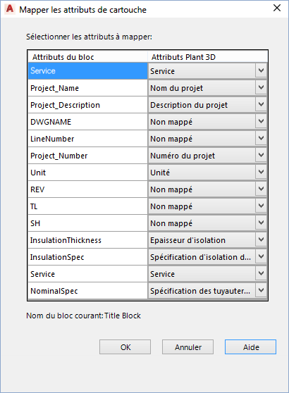 Associe les attributs de cartouche à des propriétés Plant 3D.