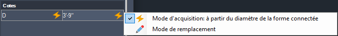 Les cotes courantes telles que le diamètre de cube utilisent le mode d'acquisition qui vous permet de mettre à jour le diamètre une fois et de faire en sorte que le reste de la cuve soit mis à jour en conséquence.