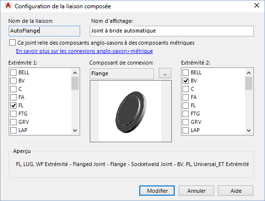 Cochez une case de cette colonne afin d'indiquer que la liaison connecte des composants aux unités anglo-saxonnes (ANSI)/métriques (DIN).