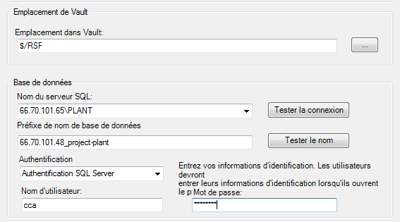 Le nom de base de données par défaut est maintenant créé à partir de celui de l'ordinateur hôte et de celui du projet. L'administrateur de base de données peut alors identifier plus facilement le projet Plant auquel appartient la base de données SQL Server.