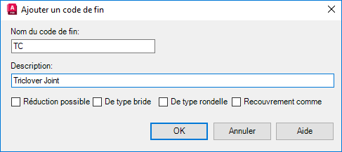 Les codes de fin sont enregistrés dans le dossier d'installation d'AutoCAD Plant 3D toolset et pas dans le projet.