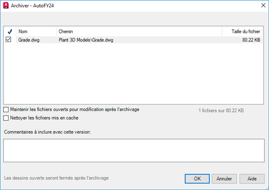 Une boîte de dialogue d’informations s’affiche, avec le nom d’utilisateur de la personne qui a extrait le dessin.