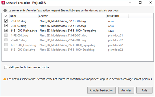 Les modifications apportées au fichier dans le dossier local sont supprimées et l’extraction est annulée.