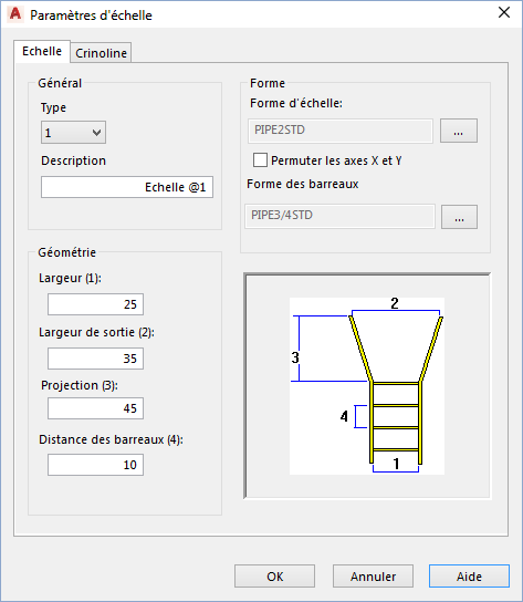 Modifie les paramètres de crinoline d'une échelle structurelle.