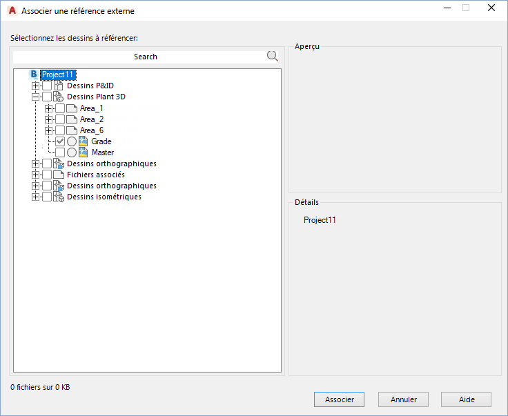 Associe un fichier dessin de projet à partir du coffre-fort.