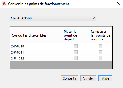 - Cliquez sur Convertir des points de fractionnement. La boîte de dialogue correspondante s'affiche.