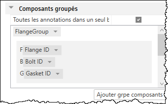 - Dans l’annotation ID de nomenclature (composants), vous pouvez personnaliser le groupe de composants et effectuer les opérations suivantes :