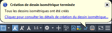 - Après quelques instants, un message bulle Création de dessin isométrique terminée s'affiche.