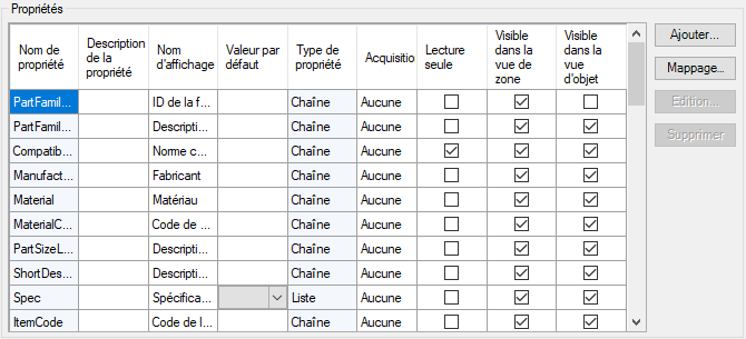 Ajoutez ou supprimez des propriétés personnalisées selon vos besoins pour la définition de classe ou de ligne.