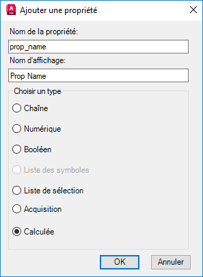 Dans la boîte de dialogue Ajouter une propriété, effectuez les opérations suivantes :
