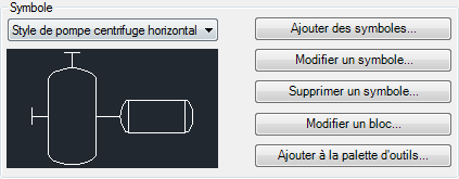 Les symboles représentent la façon dont les composants sont affichés graphiquement dans un dessin P&ID. Si vous disposez de pompes ou de vannes personnalisées, par exemple, vous pouvez créer des représentations graphiques spécifiques qui s'y rapportent et les ajouter à la palette d'outils.