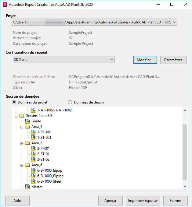 - Dans la boîte de dialogue Configuration du rapport, effectuez les opérations suivantes :