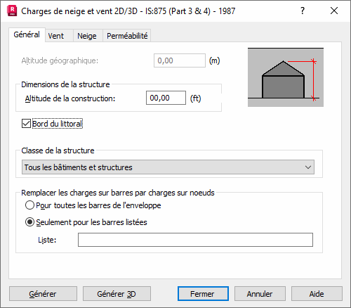 Dans la partie supérieure de la boîte de dialogue, l’option Altitude géographique est disponible ; elle permet de définir l’altitude géographique de la structure.