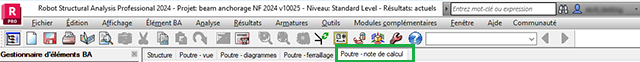 1. Dans Projet : Conception de bâtiment, cliquez sur (Armature réelle des éléments BA).